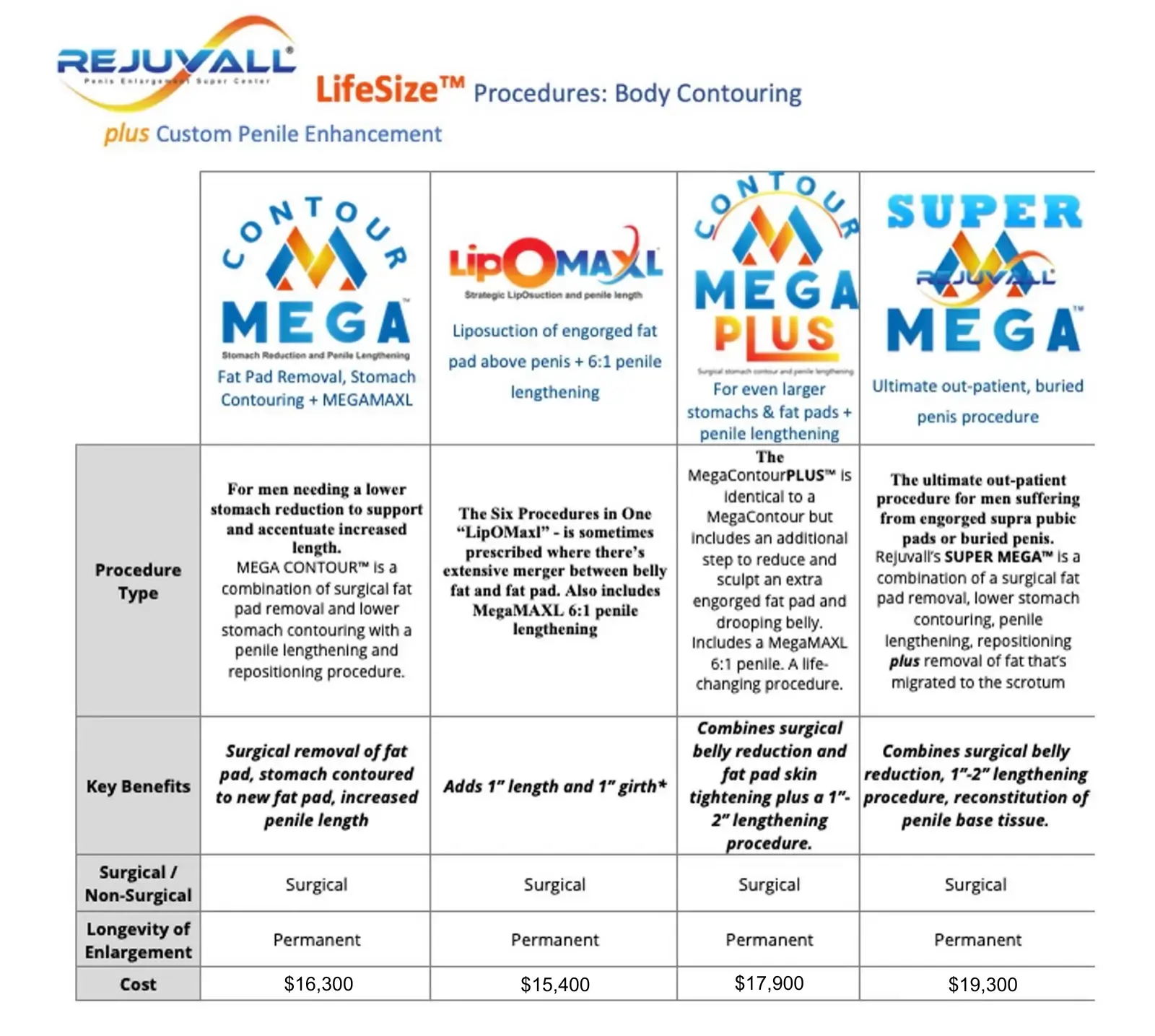 - Includes Rejuvall’s MegaMAXL 6:1 penis lengthening technology with penile repositioning